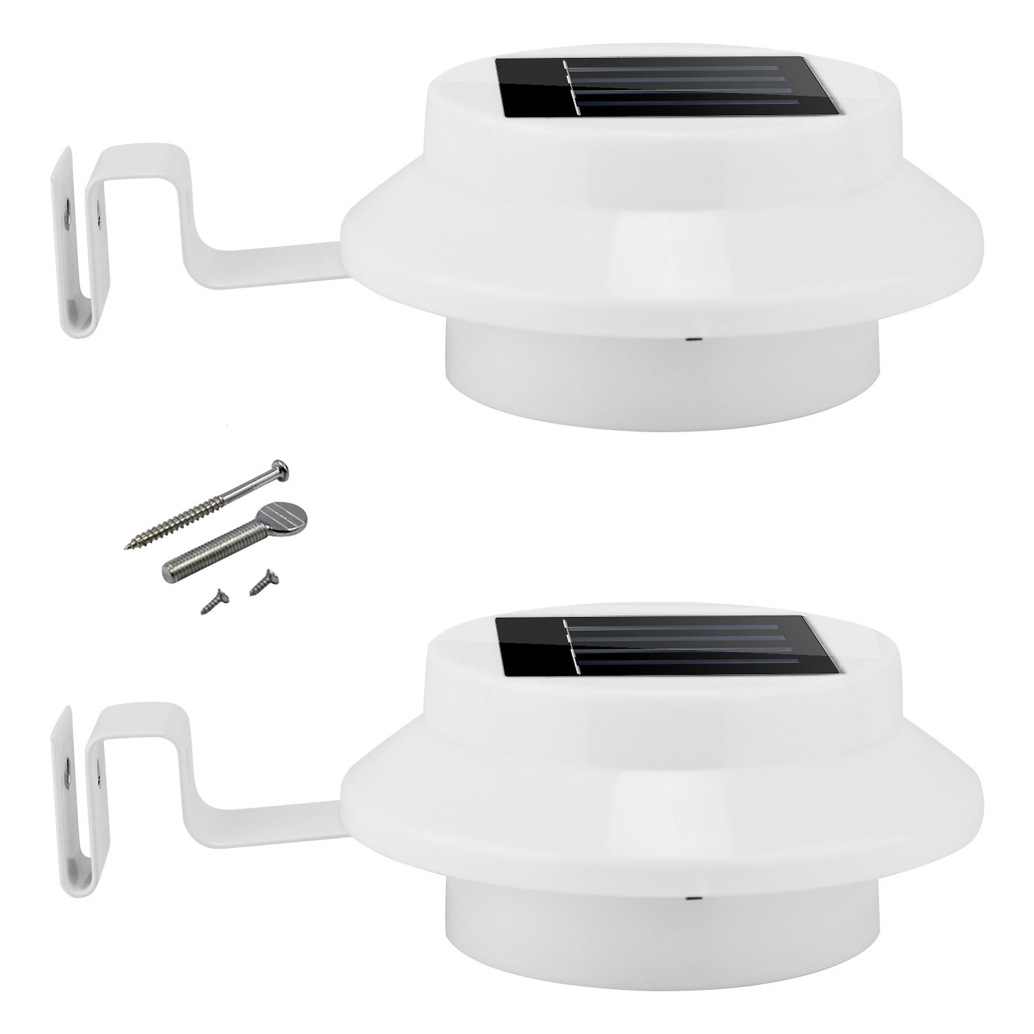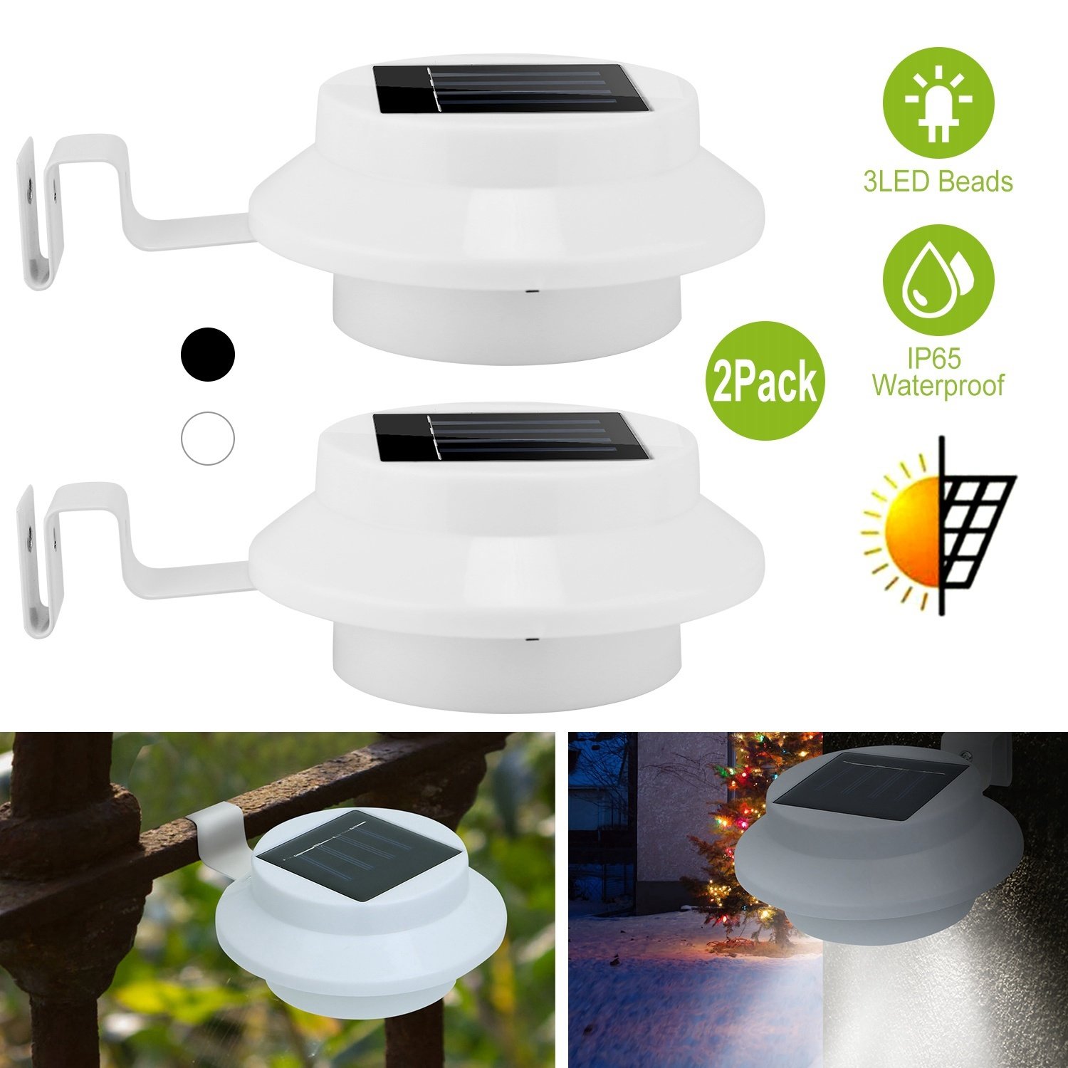 2Pcs Solar Powered Gutter Lights Outdoor IP65 Waterproof Dusk to Dawn Sensor Security Lamps