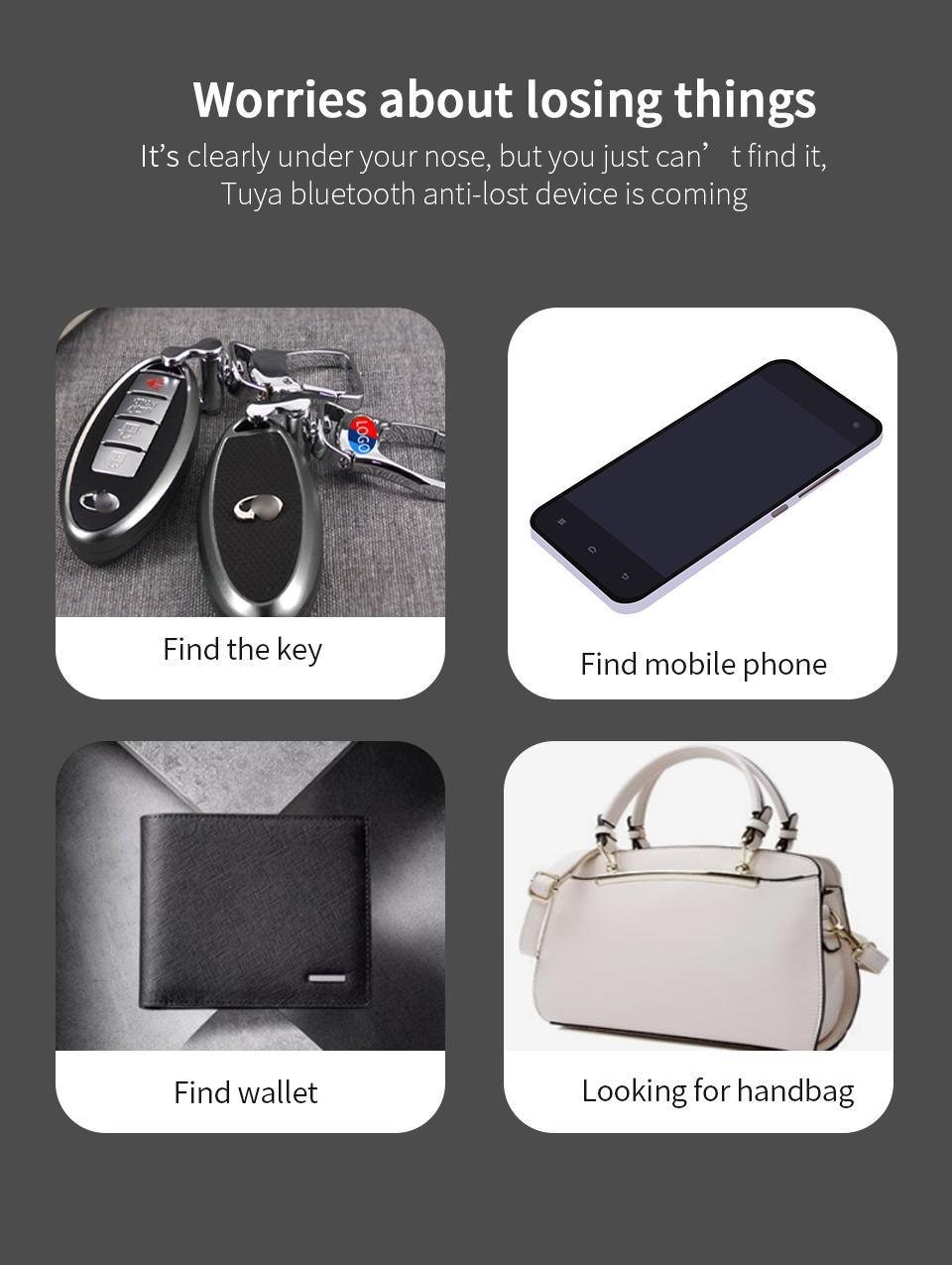 1. Smart location tracker: Easily through mobile phone location and voice prompts to help you find your wallets, pets, keys, luggage, etc.2. Works with Tuya and Smart Life: Used your phone APP Tuya or Smart-life to help you locate your items, and also can achieve two-way positioning between your phone and this finder3. Blue stable link While connecting the device to the mobile phone, the built-in super 5.0 series BLUE chip can quickly find it, and the link range is up to 50M4. Two-way search Mobile phones can look for anti-lost devices, Anti-lost devices can also find mobile phones5. Can the battery be replaced and the standby time is longCR2032 batteries are commonly used in the world and are easily available in supermarkets. This product comes with a battery. It can be easily replaced. Battery life is 3-6 months.6. Ring Smart Finder Click the bell icon in the app to ring the smart finder which can be attached to your valuable items like keys, wallets, purseluggage, cameras, bikes tablets, backpacks, etc.7. Ring Your Phone: Double-click the button on the smart finder to ring your phone. This can help you find your phone in seconds, even if it's in silent mode