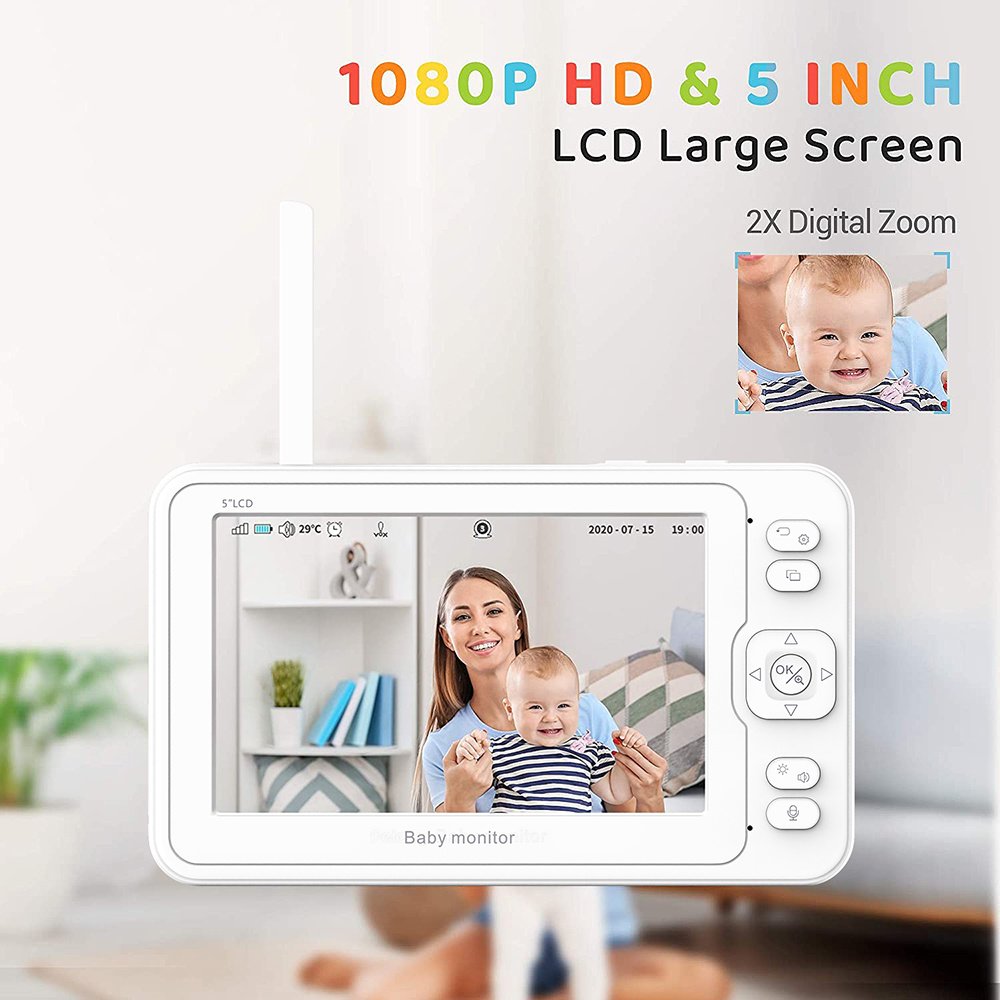 5 inch Wireless Video Baby Monitor With 1080P Camera
