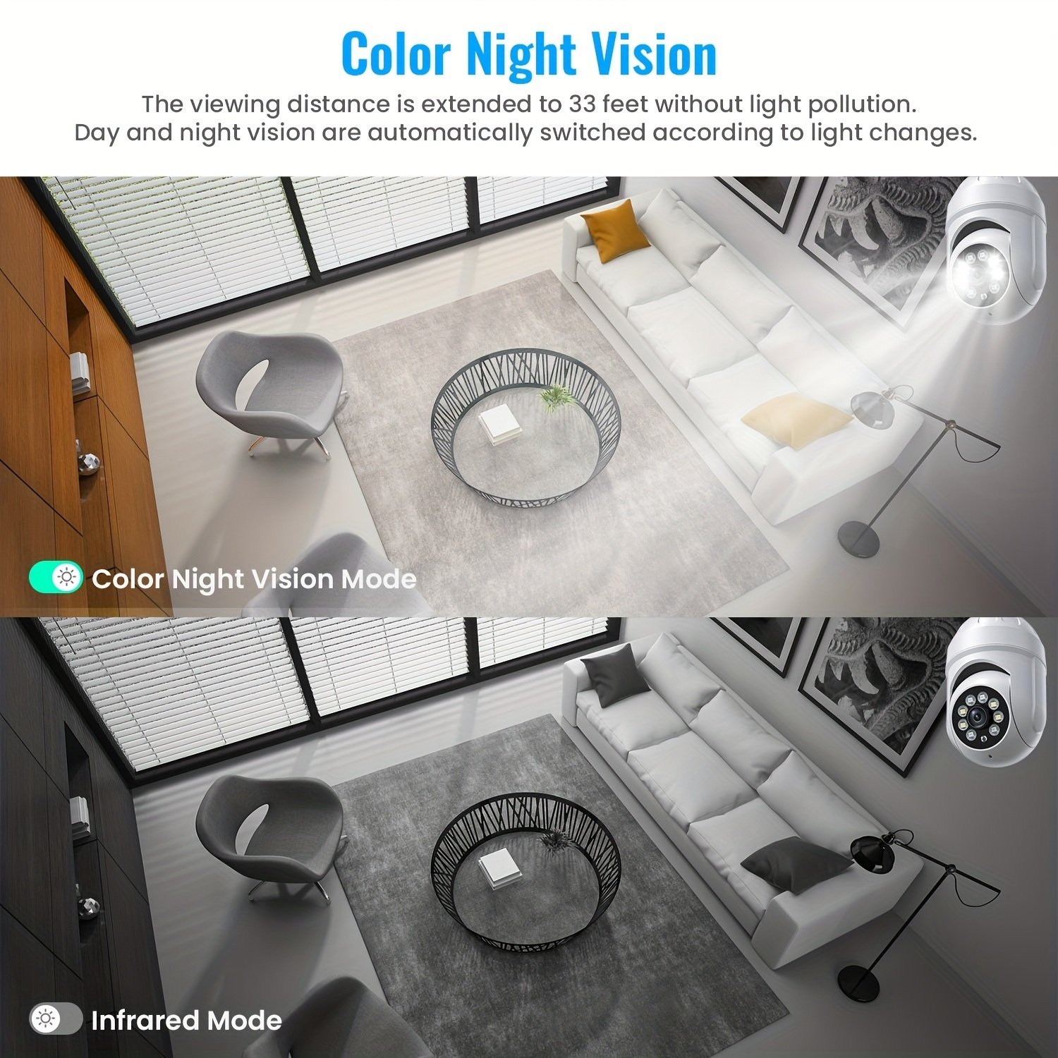 Home > Light Bulb Security Camera, Human Detection And Human Track, Color Night Vision, Instant Alert, 1080P Wireless Wi-Fi Smart Home Security Cameras,