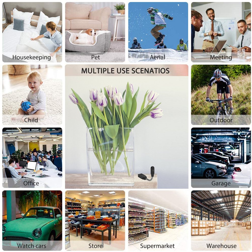 ◆This is an all-in-one camera with sport recording and security monitoring:its mini size; Coupled with its hardware 1920x1080P 30fps Full HD recording performance; it can easily be used as a portable recorder.The metal hose can be bent at will to adjust the shooting angle; Convenient for you to install wherever you need to install; as a security camera to take care of your loved ones; families and property; it is indeed a simple and practical device; suitable for indoor and outdoor multiple uses.