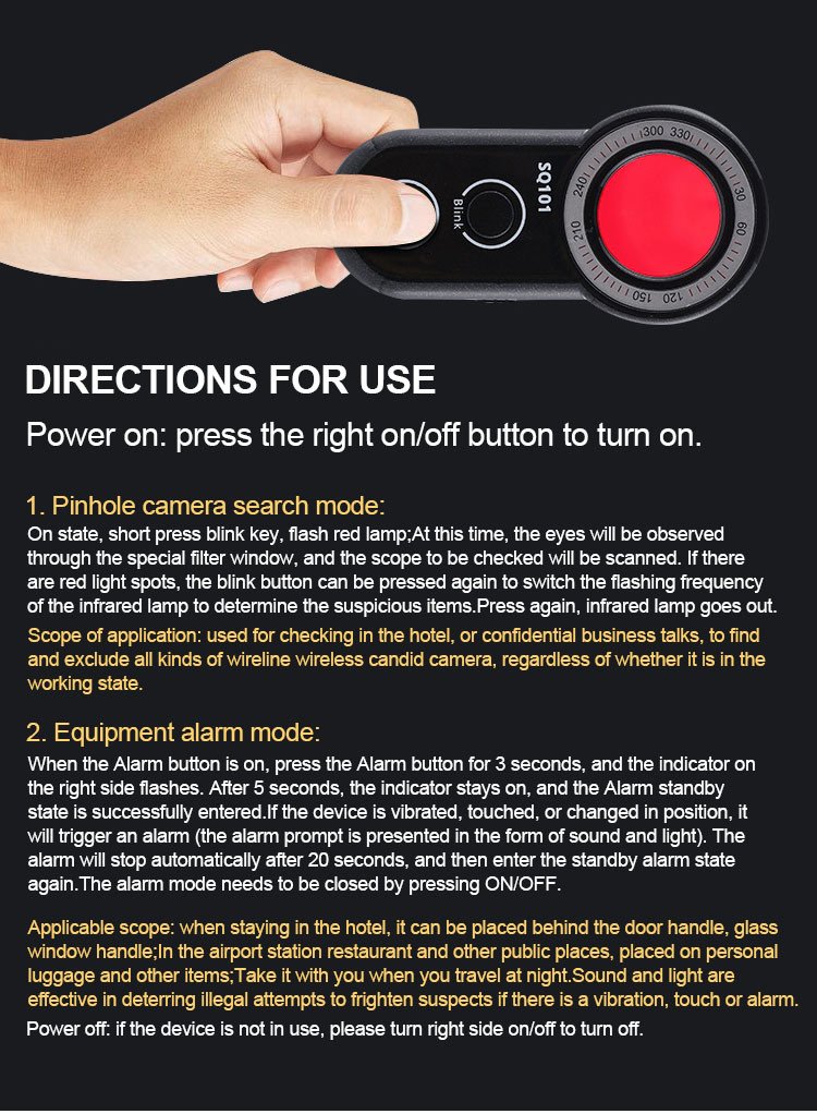 SQ101 Camera Detector; Camera Lens Detector; Vibrate Alarm; Battery Working 5hours(SQ101)
