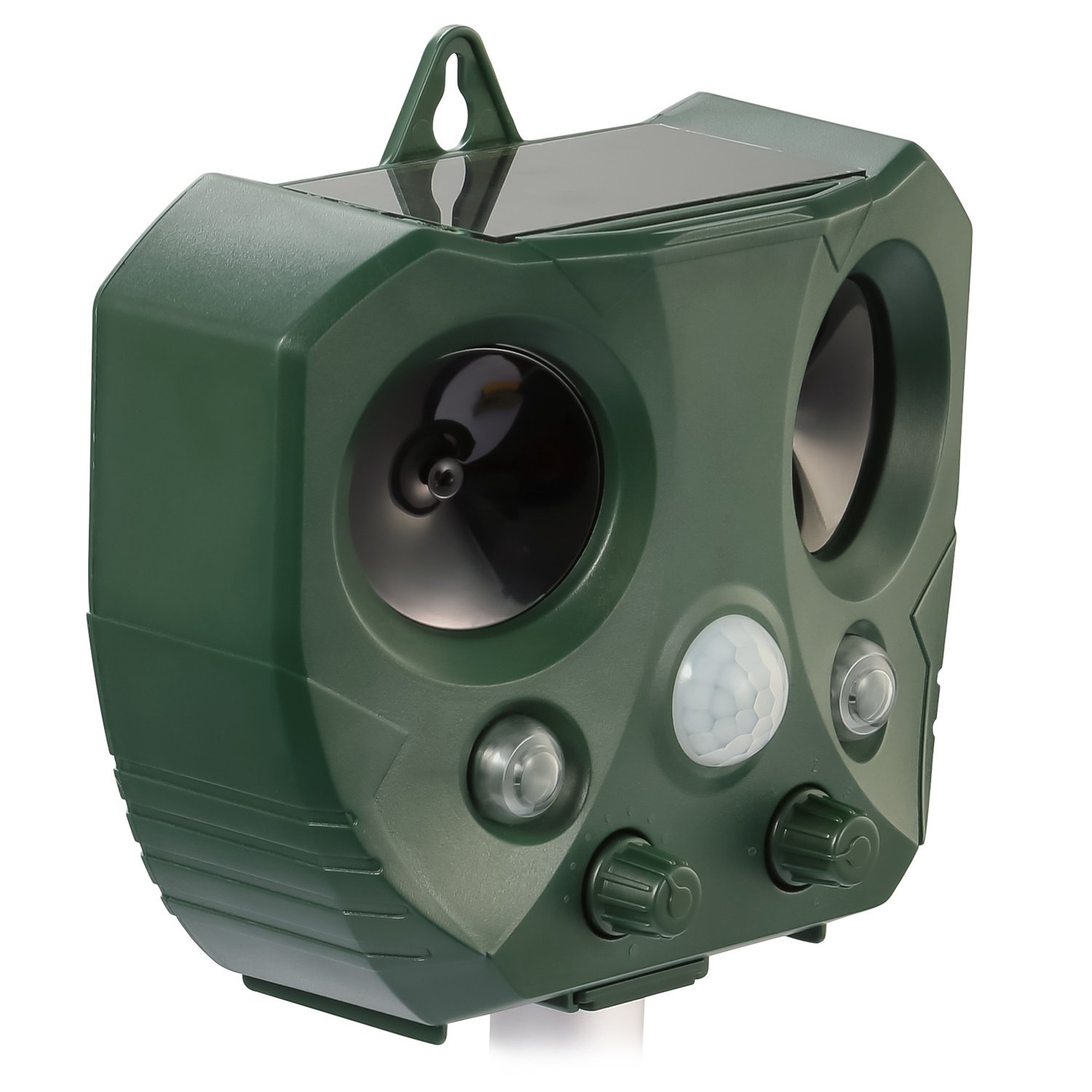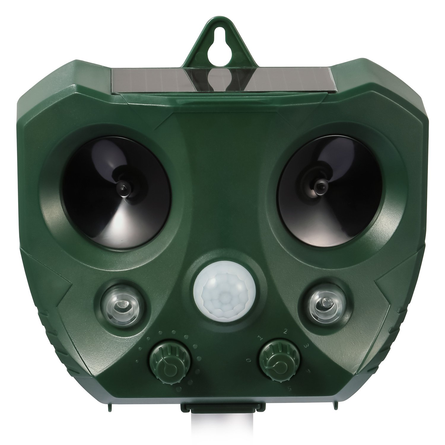 *Humanistic & Versatile*:No traps,no harm to human or animals and chemical free. Adjustable frequency and sensitivity dials allow you to get rid of cats,dogs,birds,mice,squirrels,rats,skunks,raccoons,birds,deer,mosquitoes and more. Or set it to repel all of them at the same time.