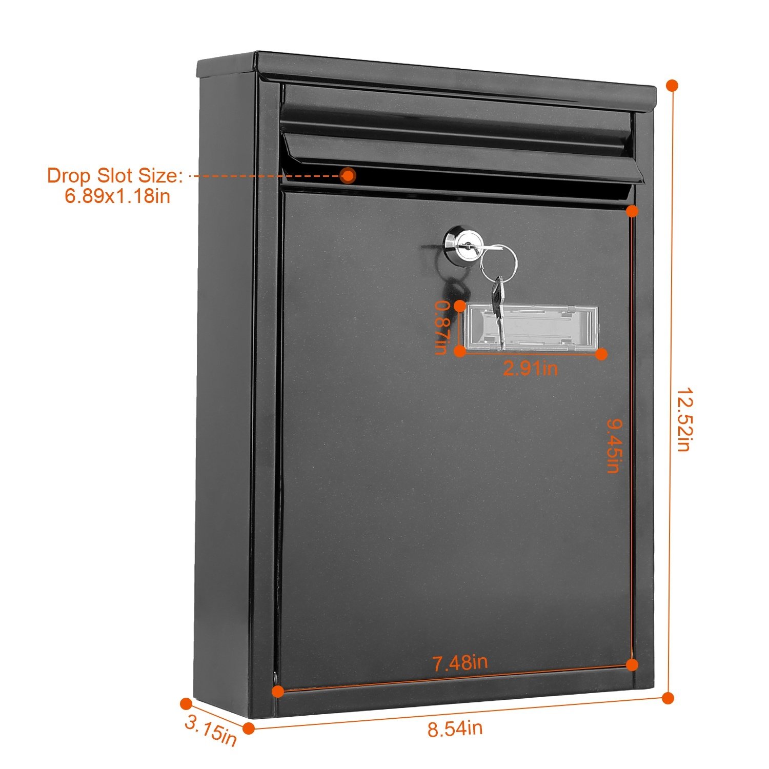 *Multi-Functional With Spacious Capacity*:With size of 12.52x8.54x3.15in,the mail box can be used for various purposes such as outgoing and incoming mail and perfect accept keys,payments,small parcels,letters,and checks,etc.. Widely used in the home,office,commercial mailbox.